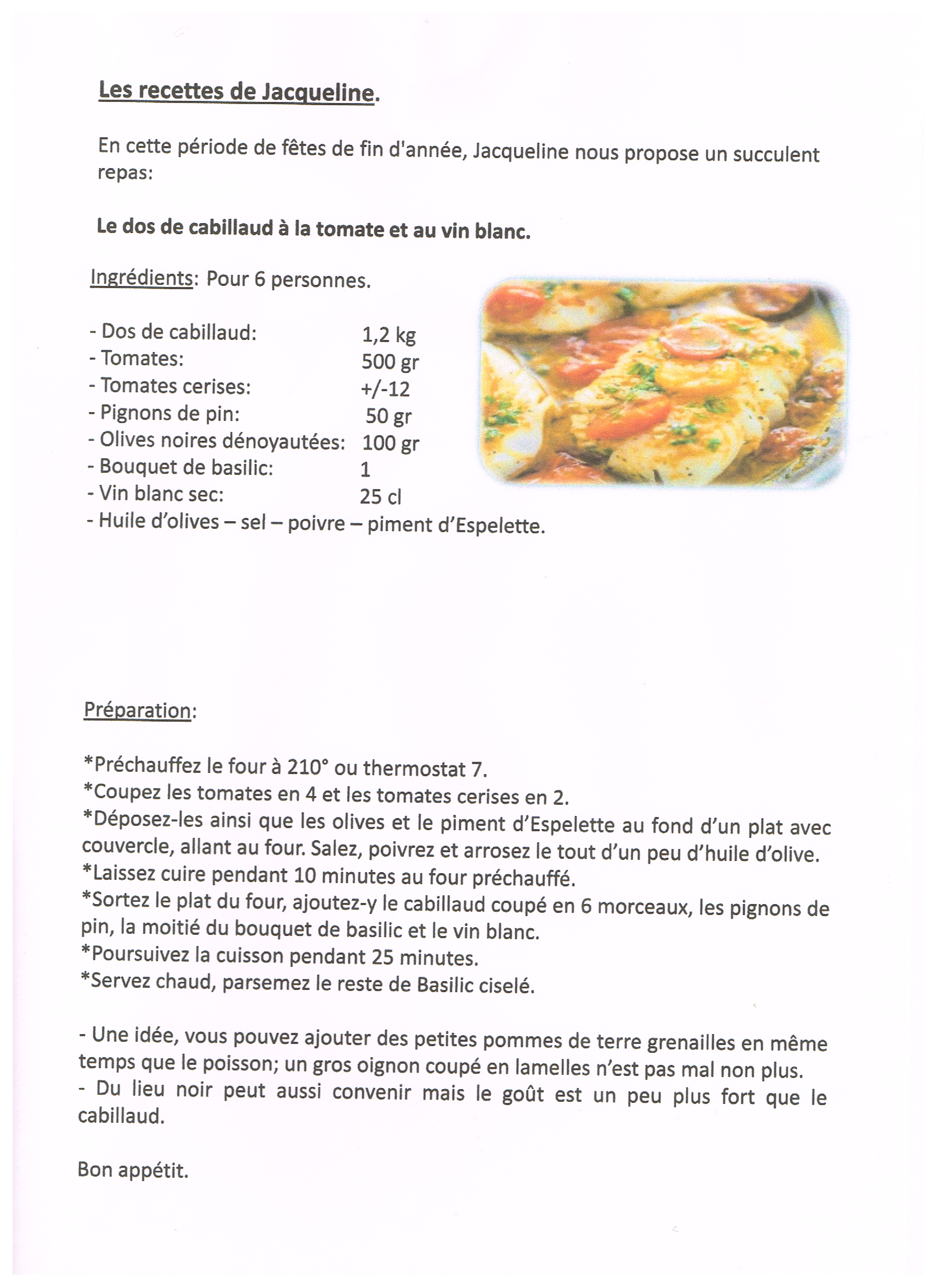 Les recettes de Jacqueline